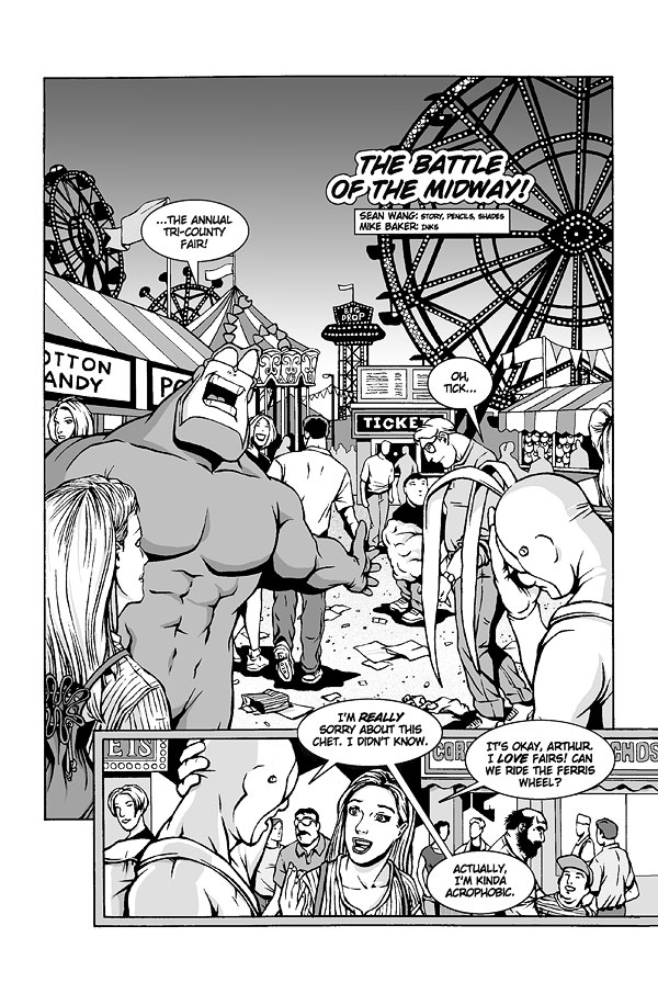 I stopped doing full Tick comics in 2000 to start work on my sci-fi project, Runners. Since then, I’ve continued to do covers for various Tick books, as well as content for the Circus Maximus series. In 2007, I returned to the Tick universe to contribute a short story to the Tick 20th Anniversary Special. I also wrote and drew my first full issue since 1999, The Tick Comic Con Extravaganza!