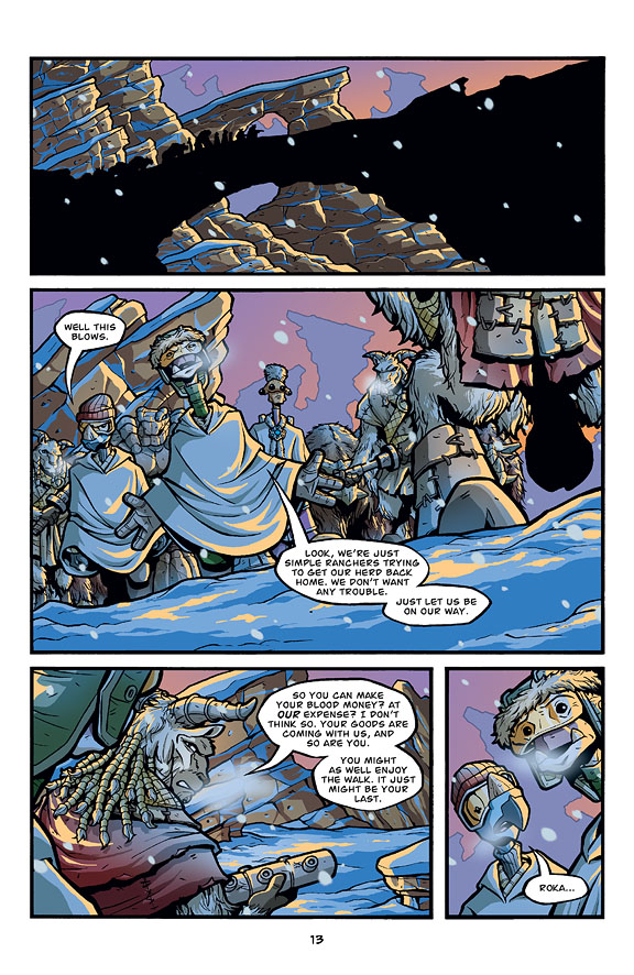 Runners: The Big Snow Job #324 pgs / ColorAs Roka's crew faces off against the suprisingly well-armed rustlers, an even bigger threat awaits the winner...an angry native population! |
